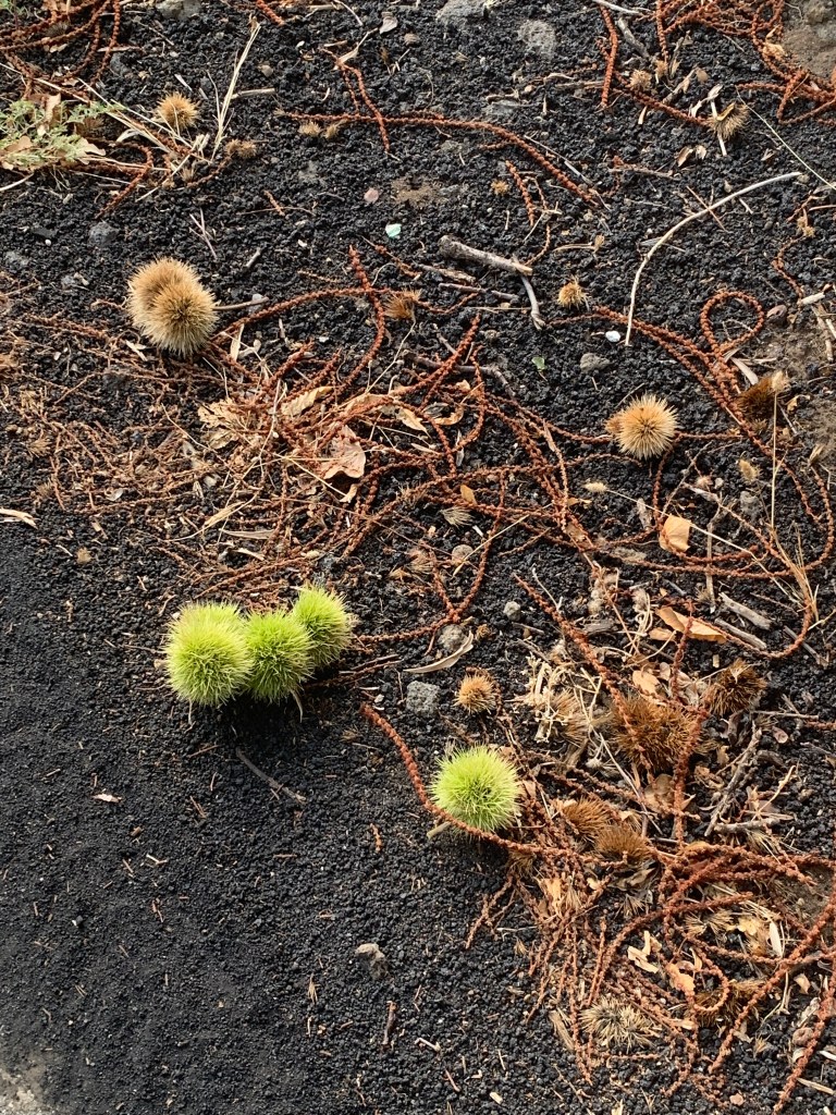 There were noticeable signs of the approaching autumn in the drying chestnut burrs fallen to the ground, and in the smell of dampness hanging in the air. We picked late season figs and wild raspberries and made an obligatory stop at the spring water fountain to freshen up.