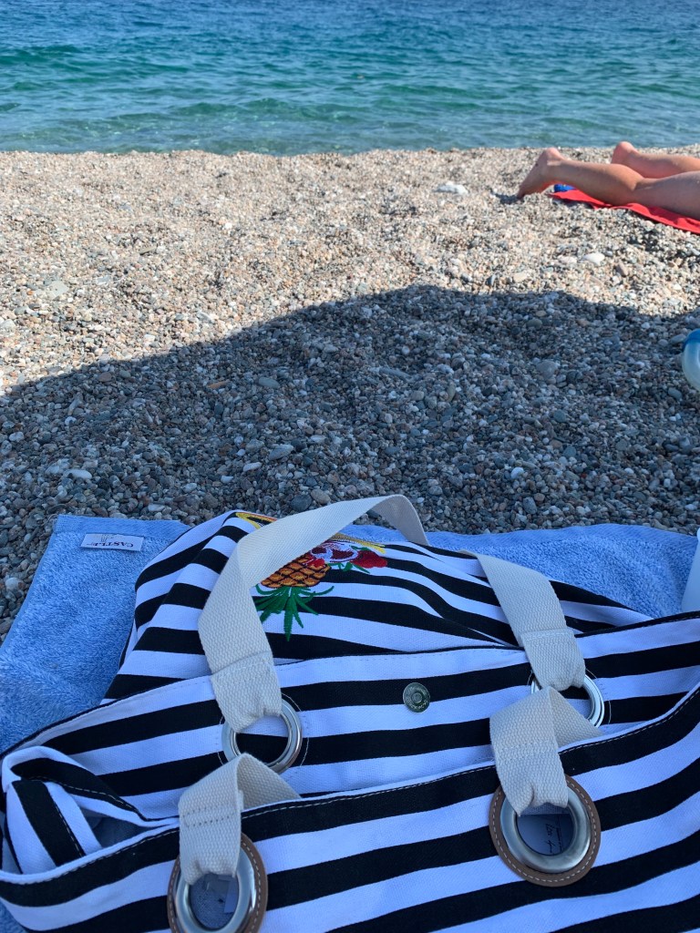 (Shhh….I picked up the beach bag at the local outdoor market for 5 euros. A real bargain!)