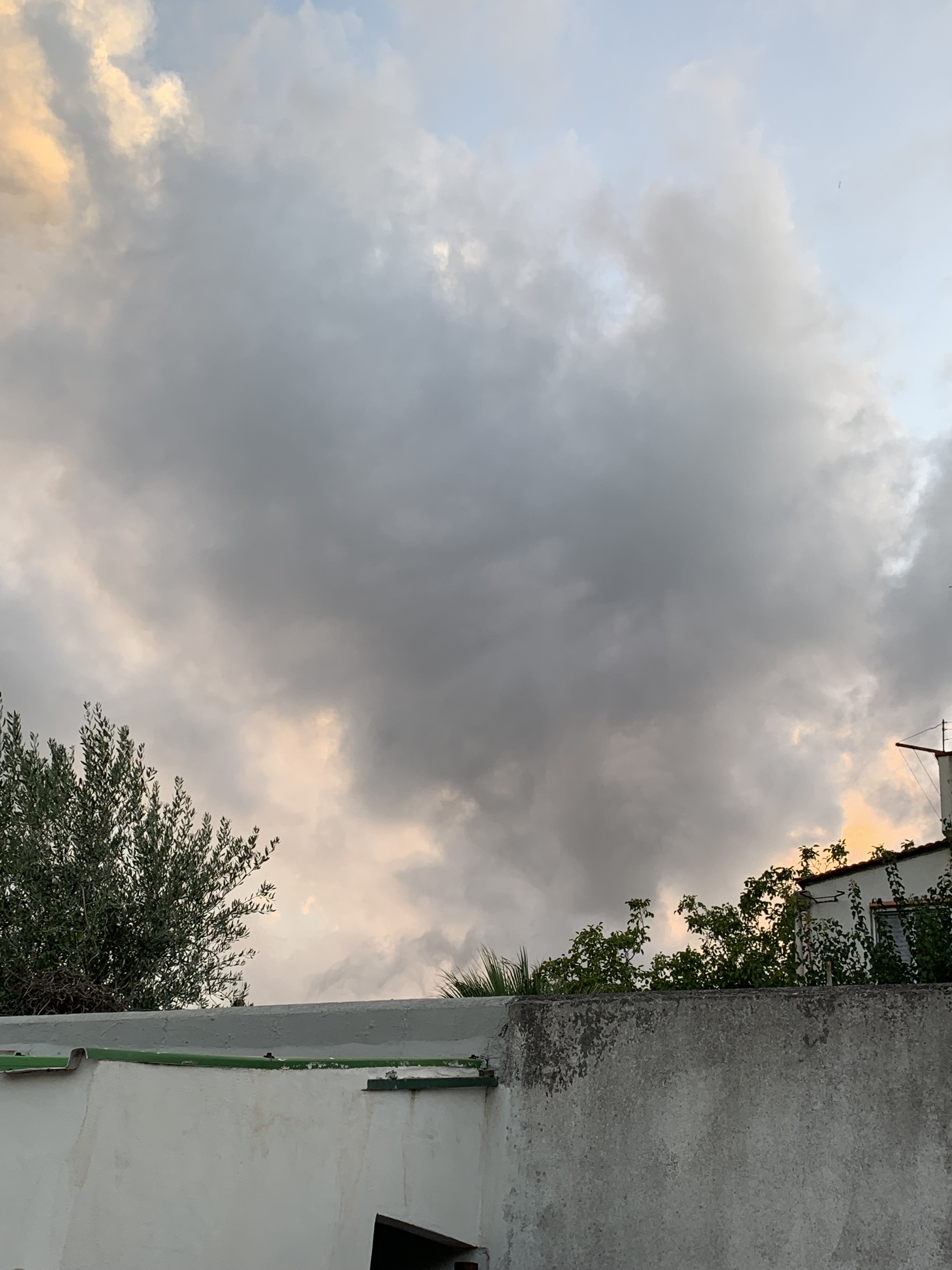 Within minutes, a cloud of ashes floated above our heads. Fortunately, the wind pushed them farther downhill, toward the coast. For this time around, we were spared having to sweep the yard clean.